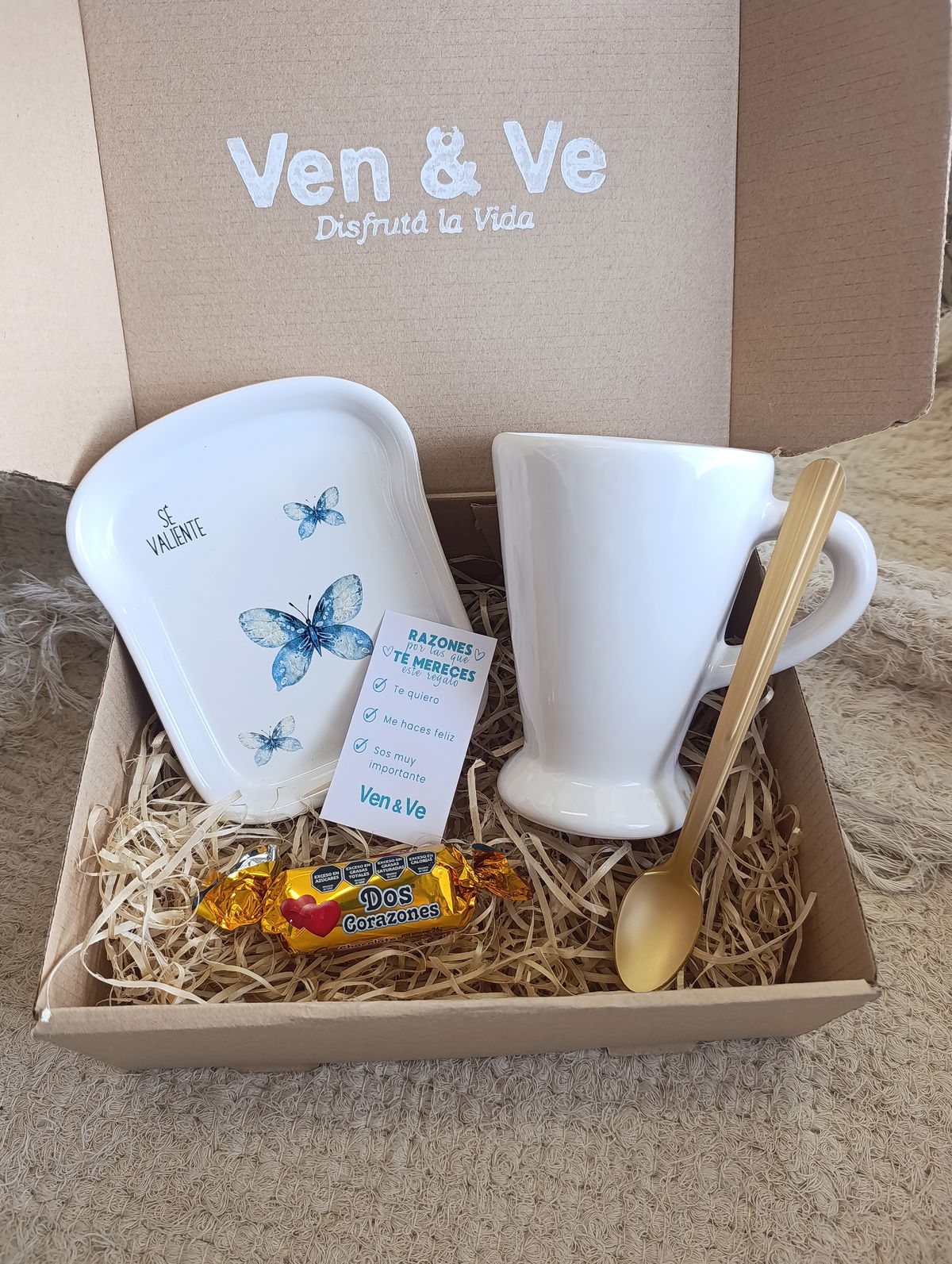 ✨Taza, plato, cuchara, Dos Corazones.