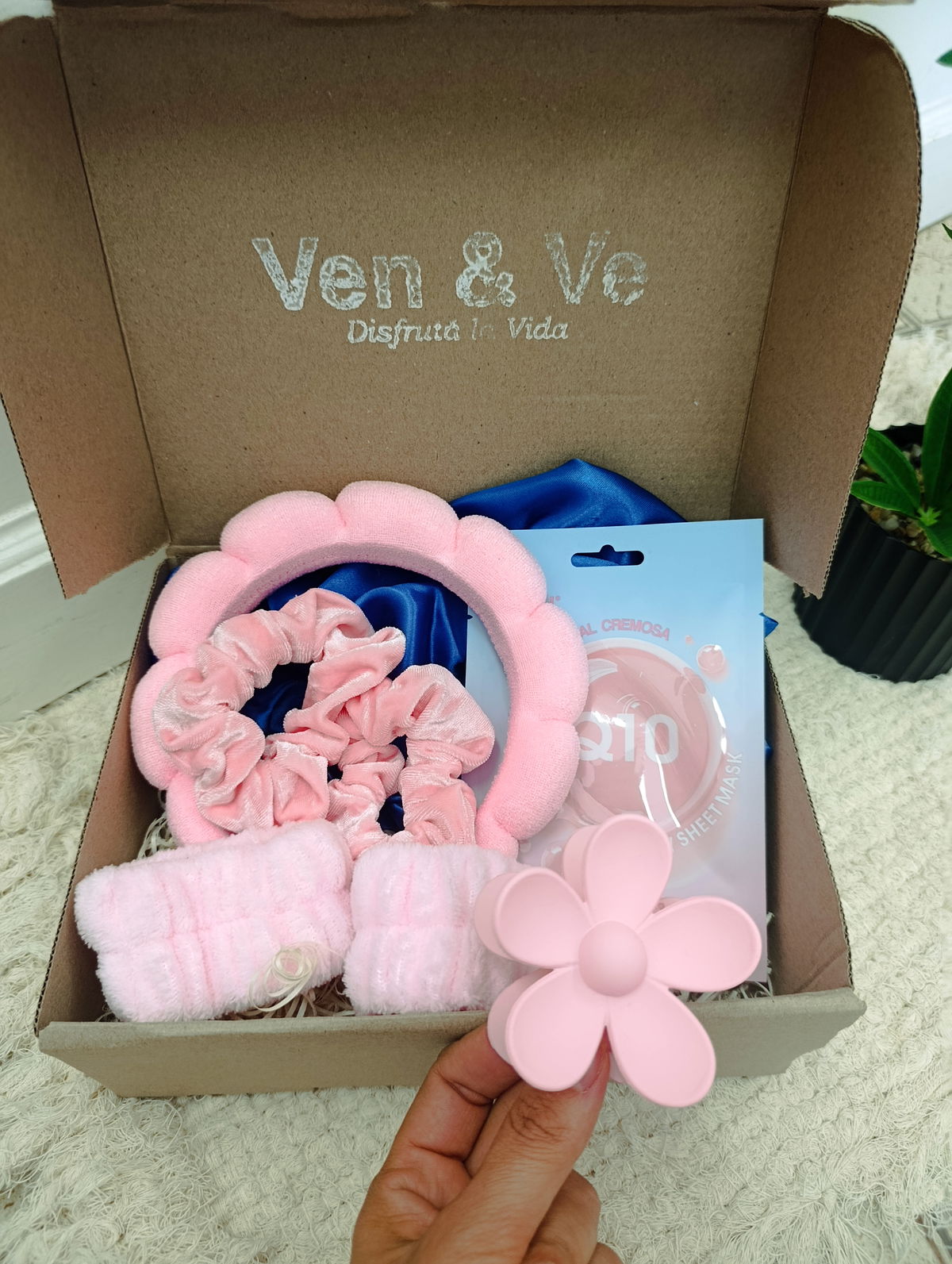 ✨set skinker, broche,2 scrunchies, cofia para dormir (de satén anti-friz), mascarilla facial.